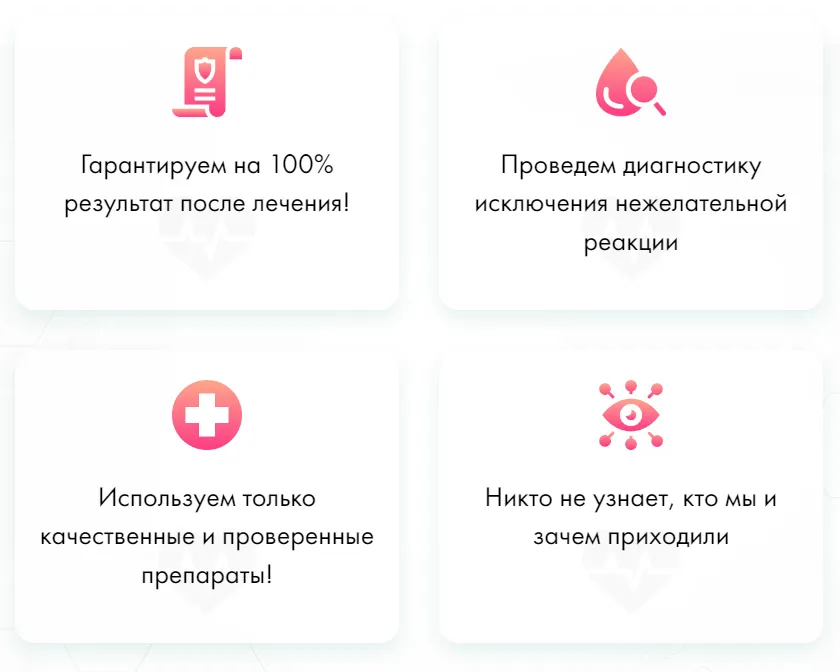 - круглосуточный выезд медицинской бригады, которая прибудет по адресу сразу после обращения или звонка;